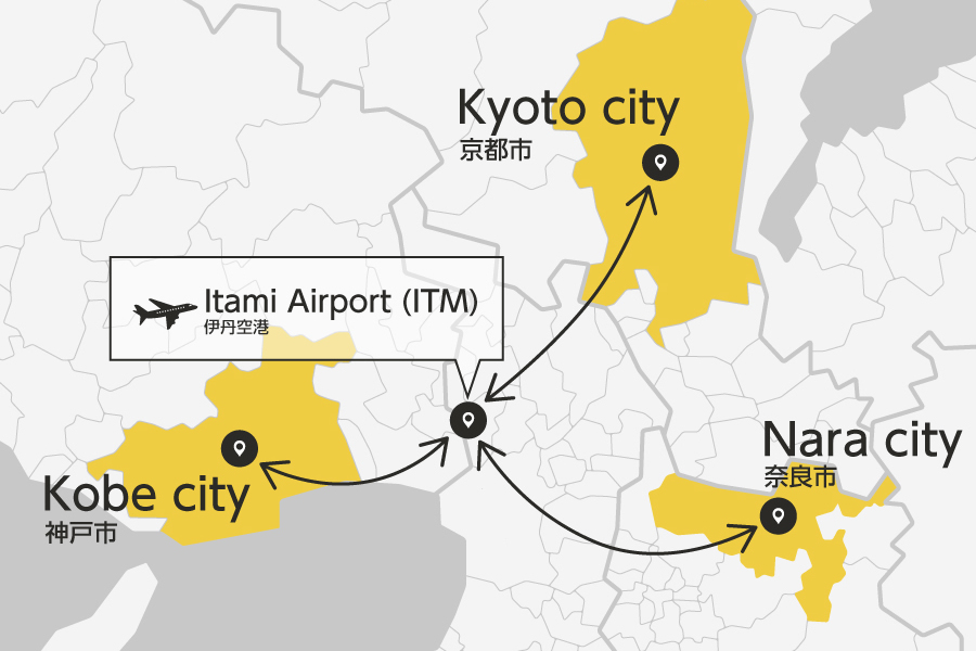 Private transfer between Kansai airport and Osaka, Kyoto, Nara, Kobe and other cities