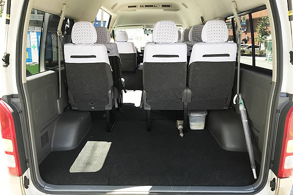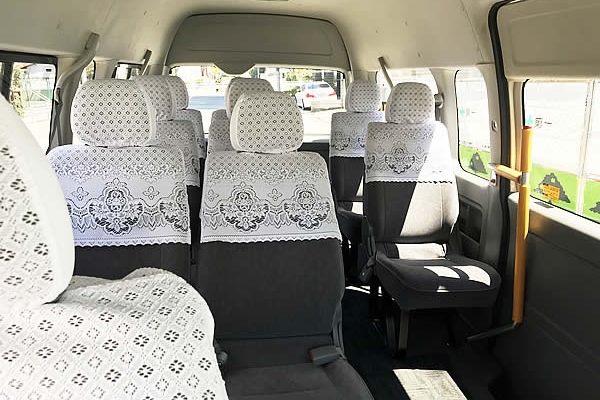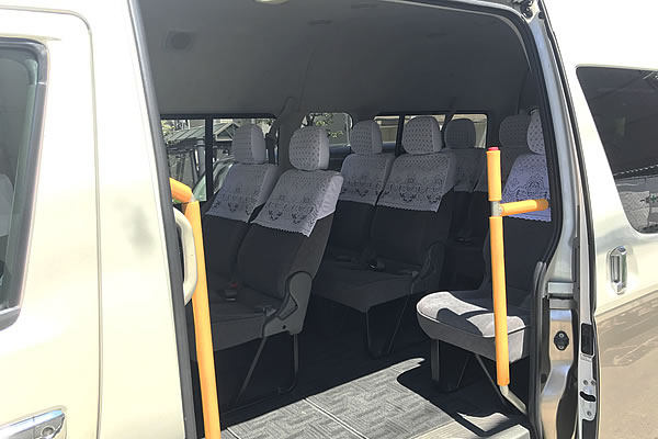 “GRAND CABIN” is the largest model among TOYOTA Hi-Ace. It’s capable for 9 passengers. Inside is very spacious and there is a footstep on the door. If you are travelling with elderly people or kids, this is the best one to choose