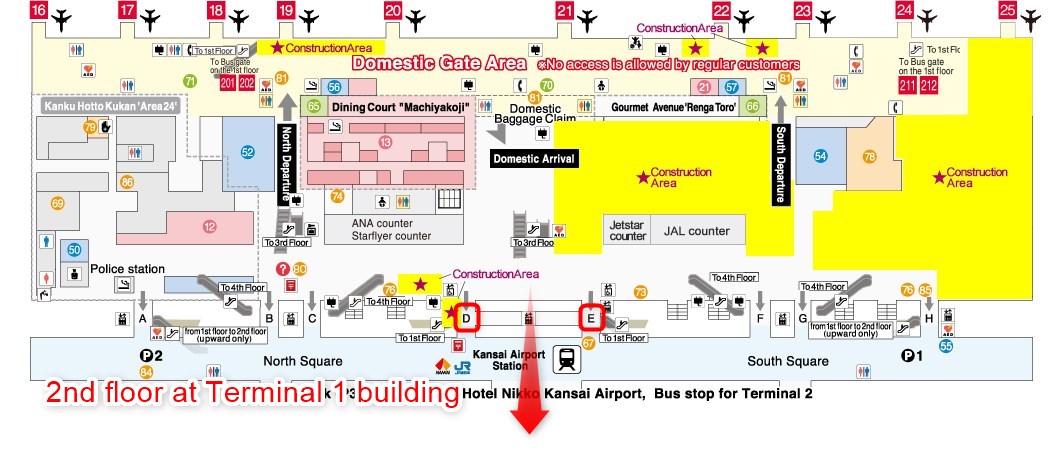 First, come to the North arrival floor. Let’s start from there. You can go up to the 2nd floor either by escalator or elevator. (As of April 2022, the escalator is not in operation)